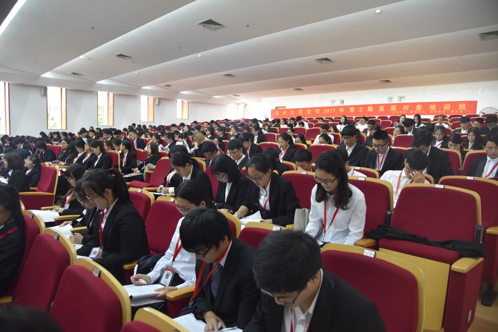 2017年11月8日,温州大学党校2017年第二期发展对象培训班开班典礼于南校区步青厅顺利举行,拉开了本学期发展对象培训班的序幕。共有305名师生学员参加培训。其中,超豪学区除做好本学区60名本科生培训工作之外,还负责了64名研究生、5名教职工、6名成教学院学生的培训组织工作。