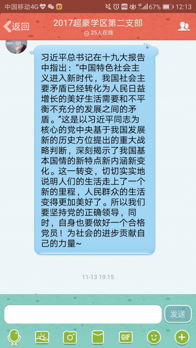 其他支部也纷纷开展了许多活动,在这留有十九大余韵的十一月,不管是重温党走过的进程,还是学习党主张的精神,都是一种成长和感悟,伴随着短暂的大学时光,永远留在彼此的记忆当中,永不消弭。